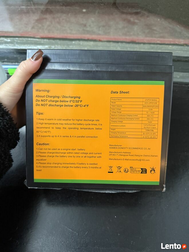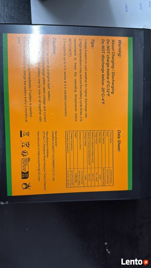 Mam na sprzedaż nowy akumulator litowo -żelazowo fosforanowy o parametrach 12.8 V i pojemności 30Ah Możliwość wysyłki paczkomatemTo ogłoszenie jest archiwalne i może być nieaktualne.